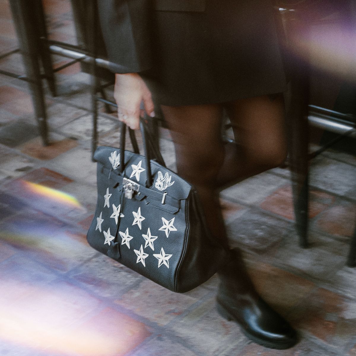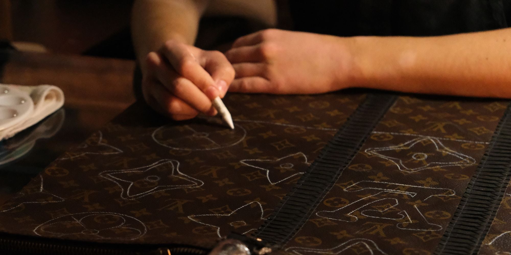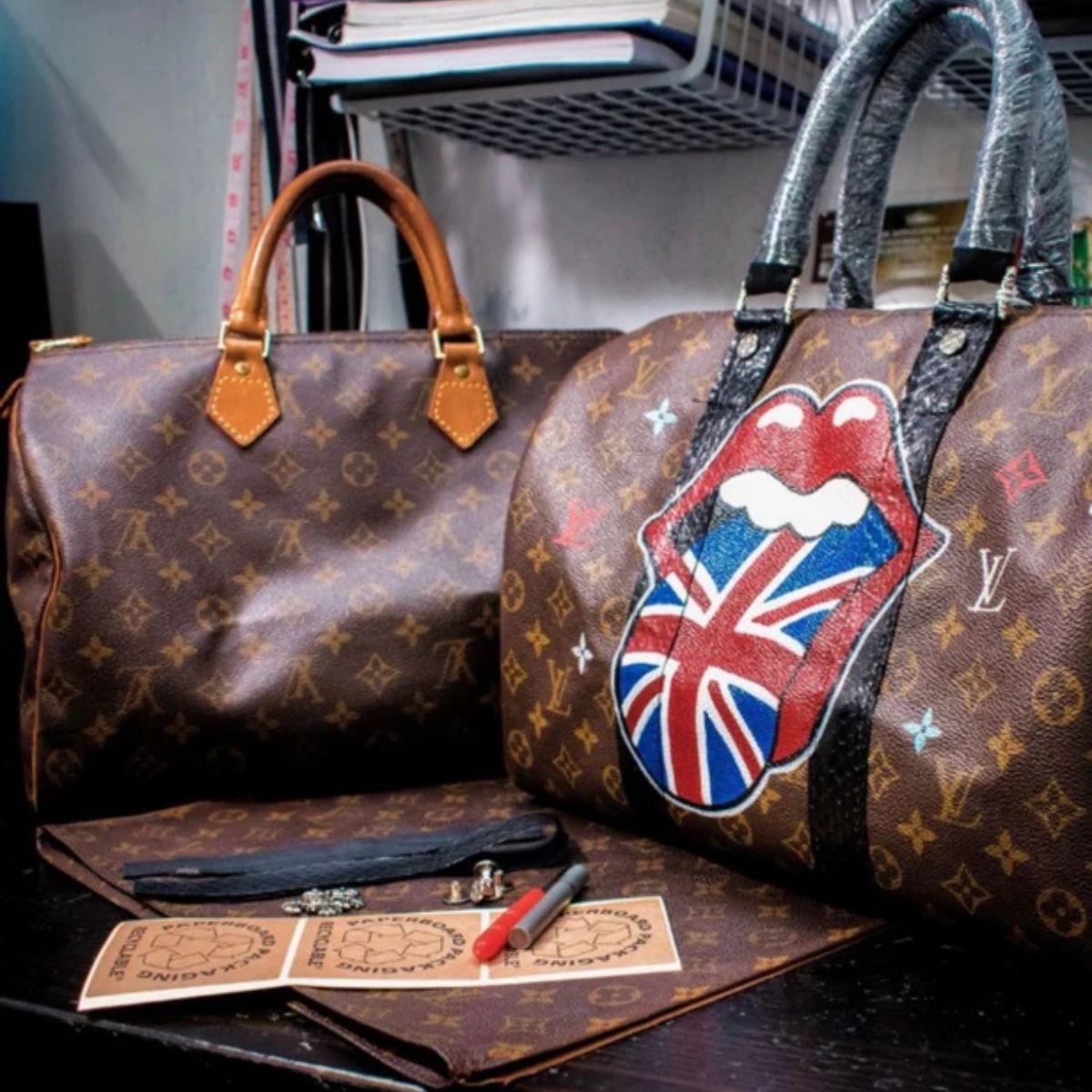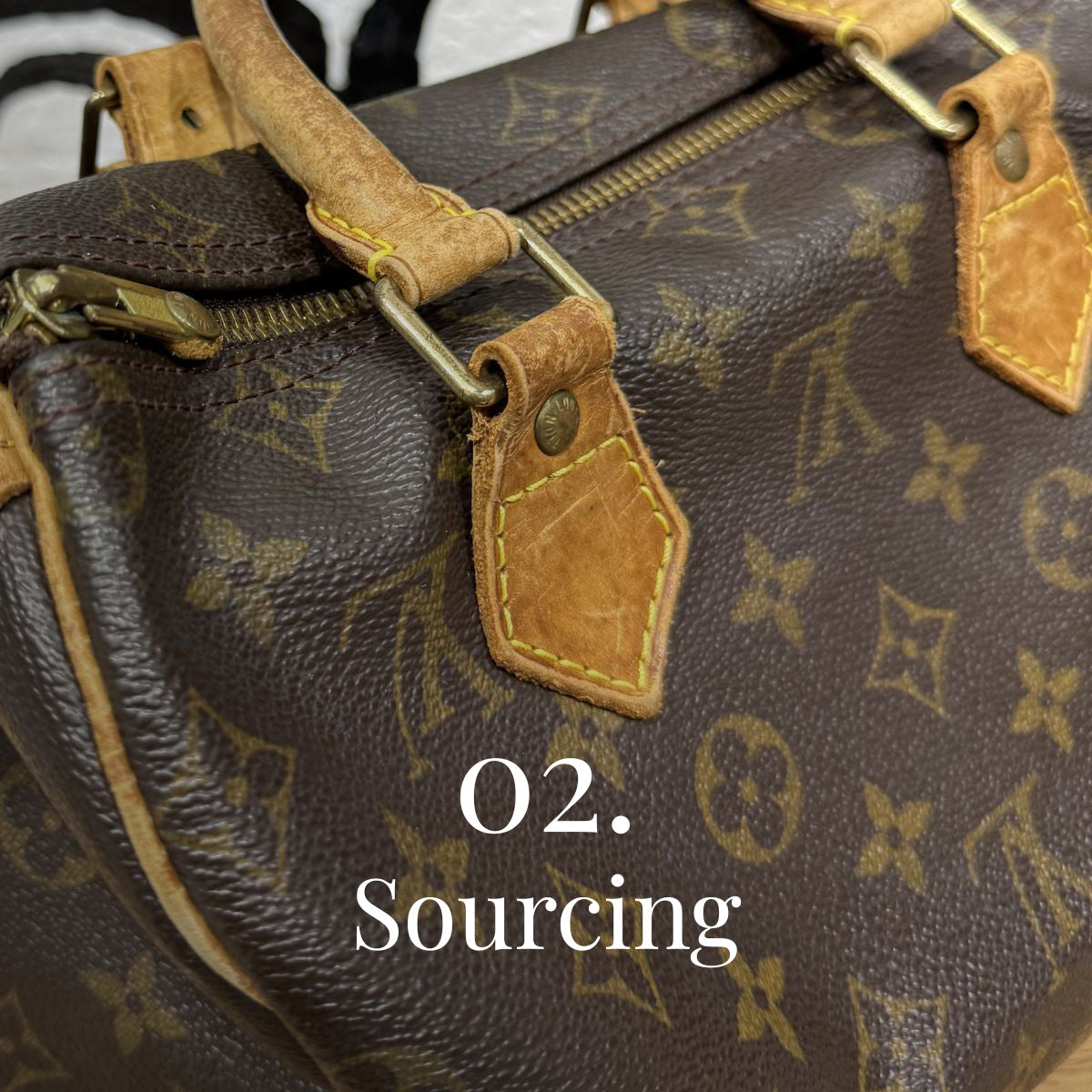 Every piece begins as an authenticated vintage Louis Vuitton or Hermès bag, sourced through trusted secondary markets and verified before any intervention begins.