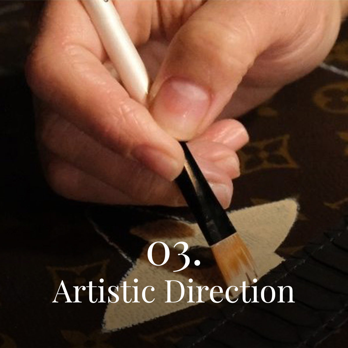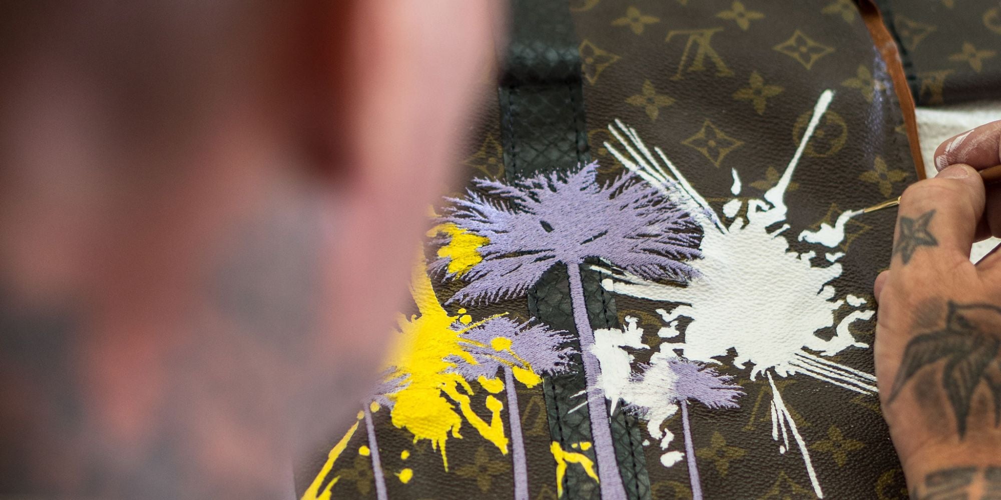 Any authenticated vintage Louis Vuitton or Hermès piece can serve as the foundation for a commission. Painting. Embroidery. Material reconstruction. Combined techniques.